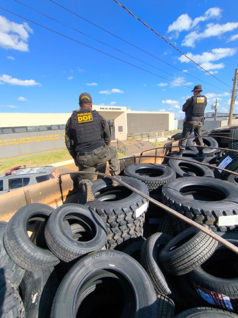Uma carreta Iveco, carregada com 165 pneus de diversos tamanhos, foi apreendida por policiais militares do DOF (Departamento de Operações de Fronteira), na tarde desta segunda-feira (12), no distrito de Vista Alegre, em Maracaju.