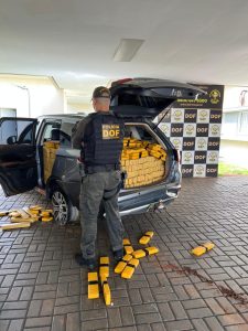 No interior do veículo foram encontrados diversos tabletes de maconha. Durante checagem, os policiais constataram que as placas afixadas eram falsas e que o veículo havia sido furtado na cidade de São Paulo (SP).